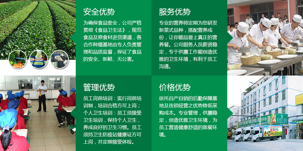是一家集農副產品配送、餐飲管理服務為主的有限公司。公司秉承“誠信經營、顧客至上”的經營理念,嚴格按照 ISO9001:2000 國際標準質量體系進行管理。公司經過不斷的努力,特別在企事業單位、工廠及學校等幾個領域方面積累了豐富的服務管理經驗。公司主要從事餐料配送、農副產品配送、學校食材配送、新鮮有機蔬菜配送、政府食堂蔬菜配送、新鮮蔬菜糧油配送及學校食堂承包業務。服務范圍有深圳寶安、福田、南山、龍崗、廣州、惠州、東莞等地。